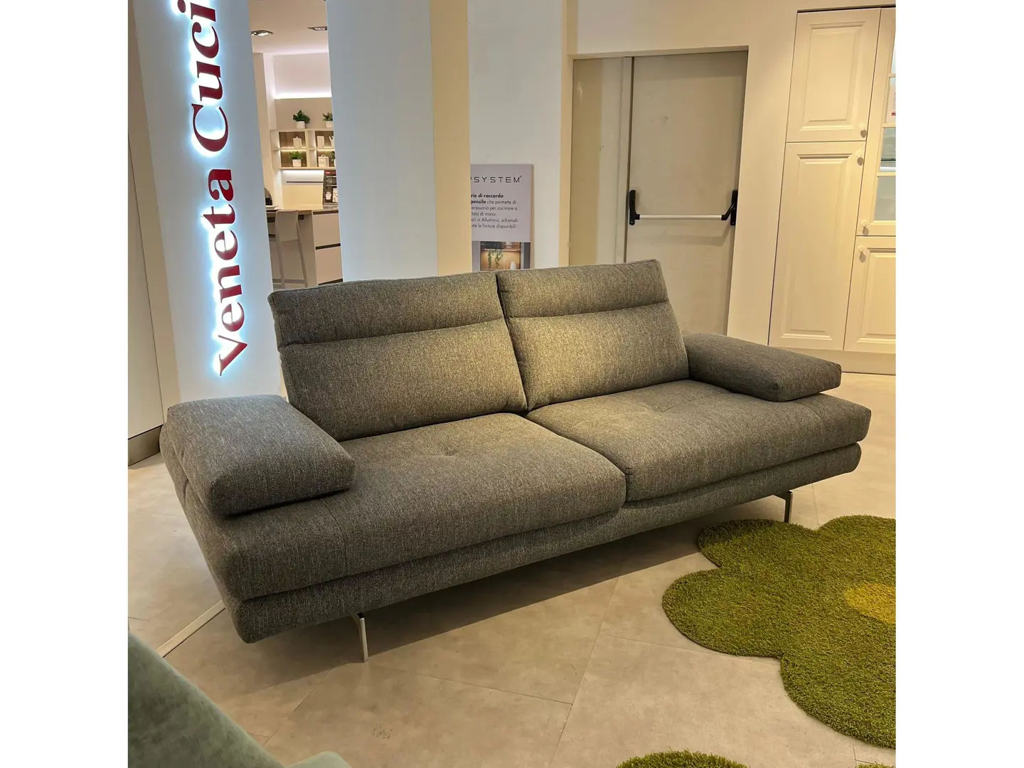 Le spalliere e i braccioli scorrevoli permettono di estendere la seduta, trasformando il Toby Wing in un autentico day-bed. Questo divano è sfoderabile, rivestito in tessuto Quebec 26 grigio, con base in metallo satinato.