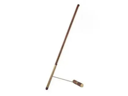 Lampada da terra artistica che emette una luce calda e indiretta, realizzata in legno massello di noce naturale e metallo con finitura in ottone.