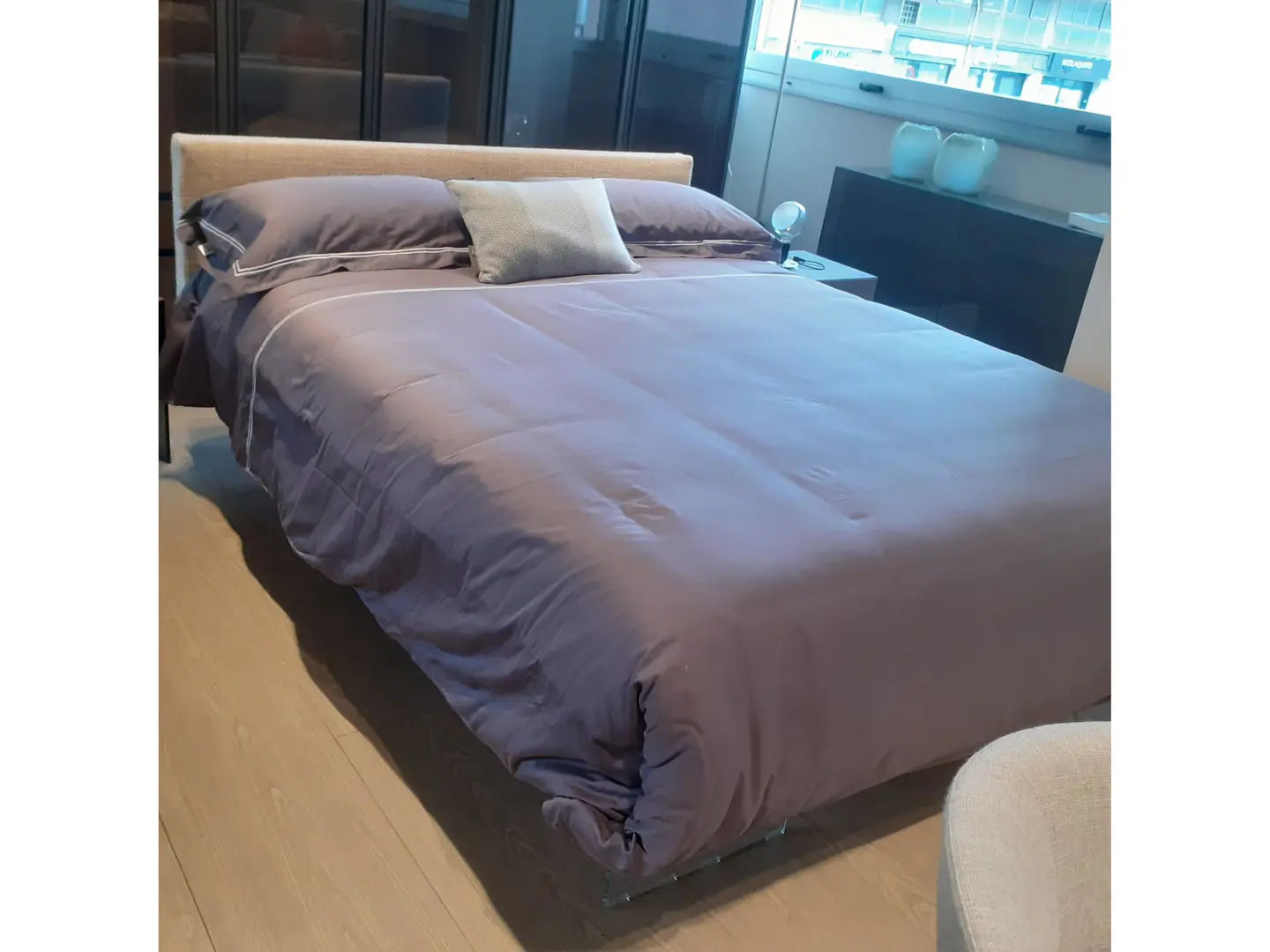 Il letto Air appare come se stesse fluttuando, grazie alla trasparenza dei suoi supporti in vetro temperato extra-chiaro. La testata è rivestita in tessuto Wabi Sabi 0003 con finitura posteriore. È fornito di una rete per materasso di dimensioni 160×200.