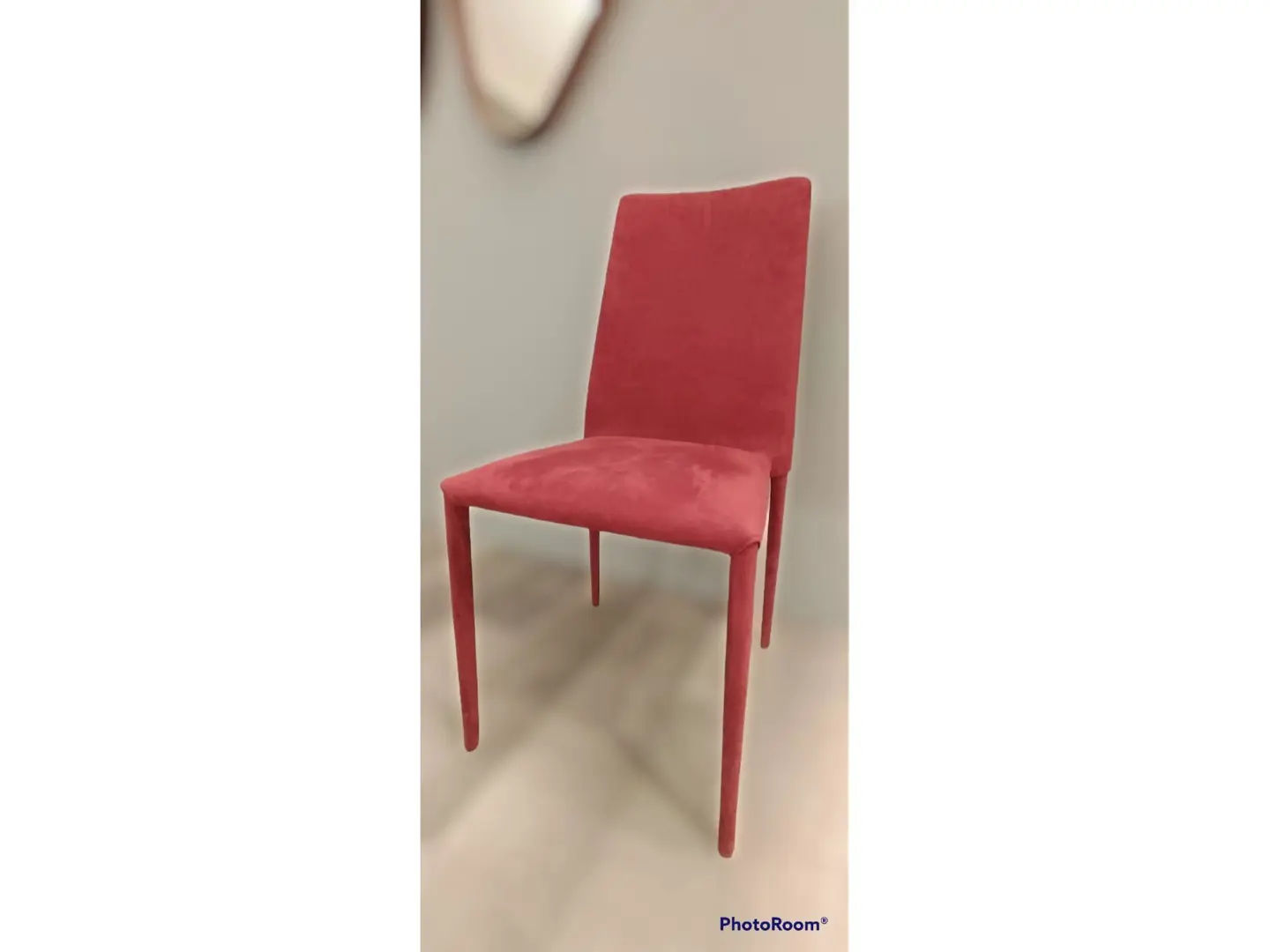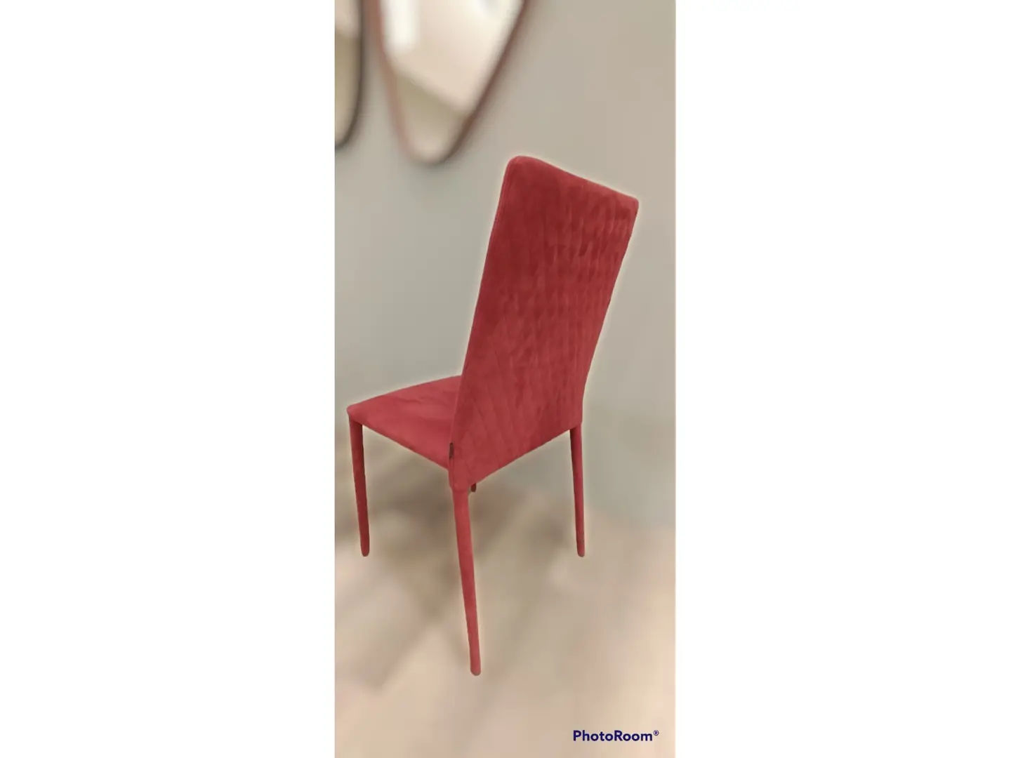 Set di 4 sedie con schienale trapuntato, design flessibile ed ergonomico, caratterizzate da una robusta struttura in acciaio, completamente imbottite e rivestite in Waterproof Nabuk TN008 Bordeaux.