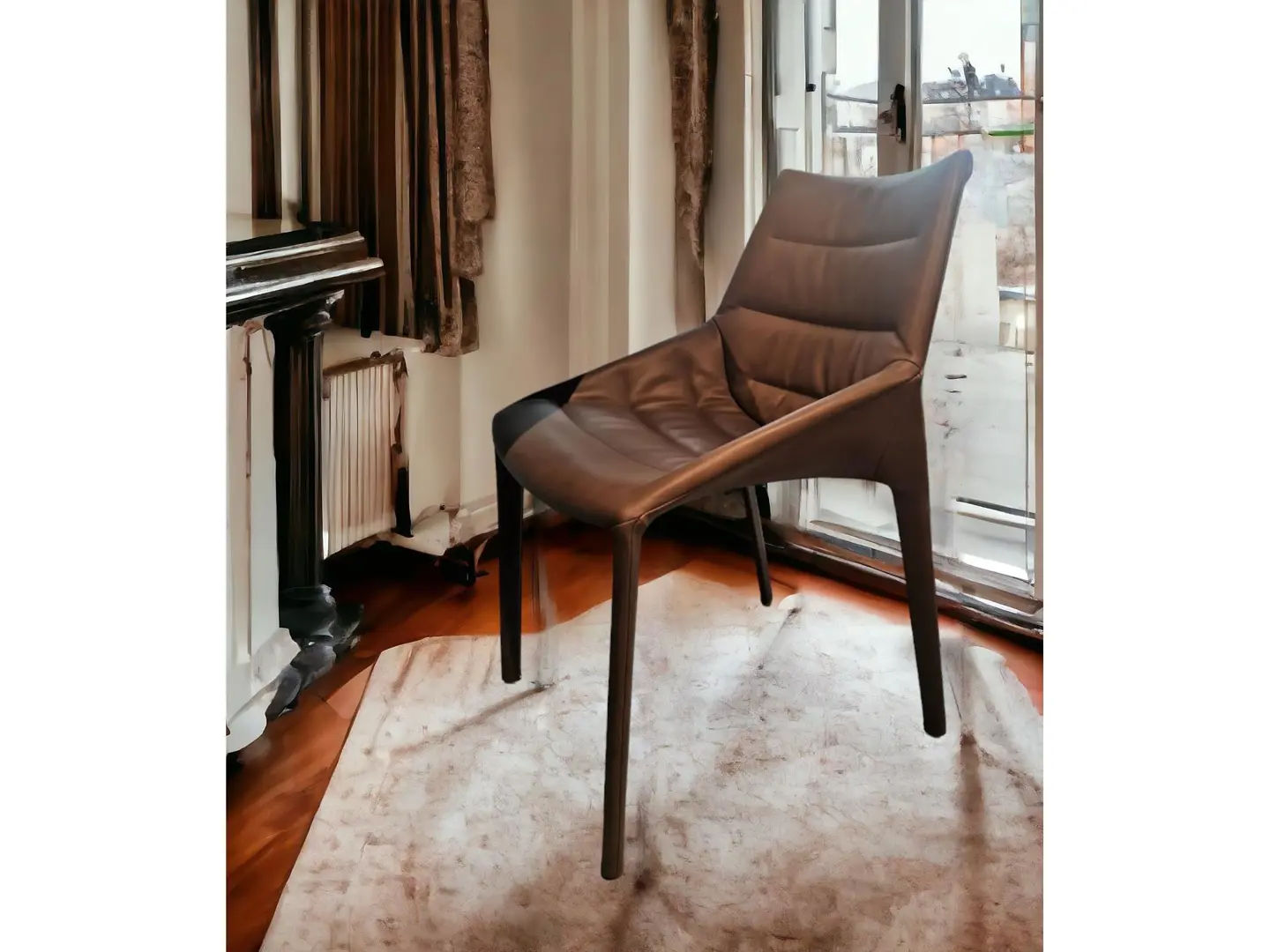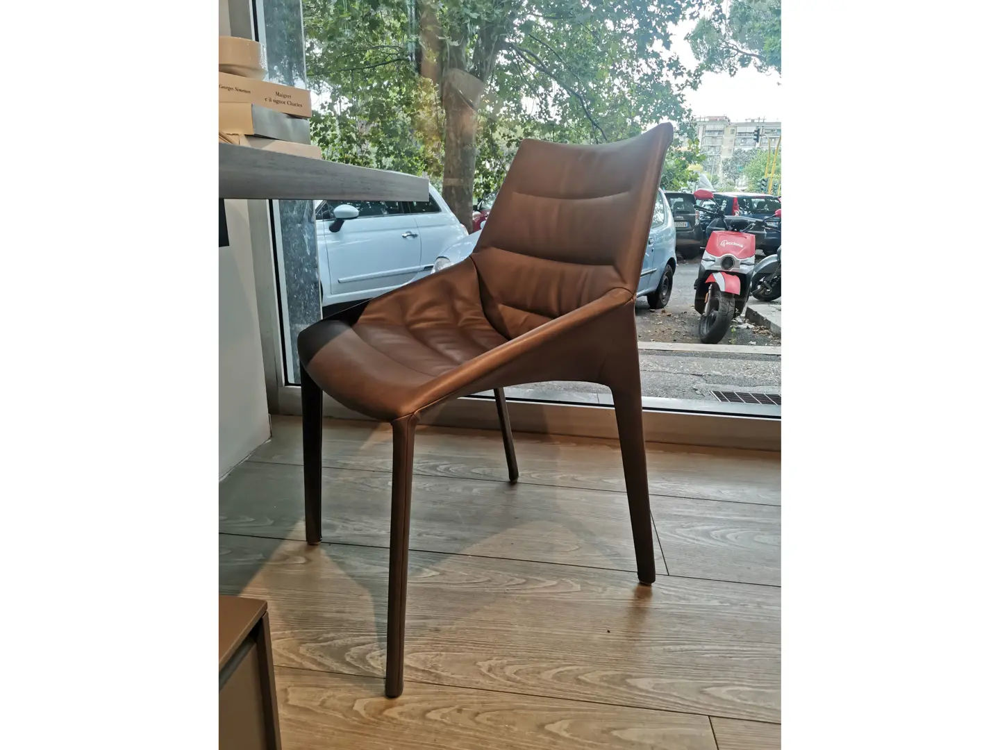 sedia ergonomica dal design moderno, realizzata in pelle con una base in vetroresina sostenuta da gambe metalliche rivestite. Rivestimento in Pelle Categoria 1221 Fango