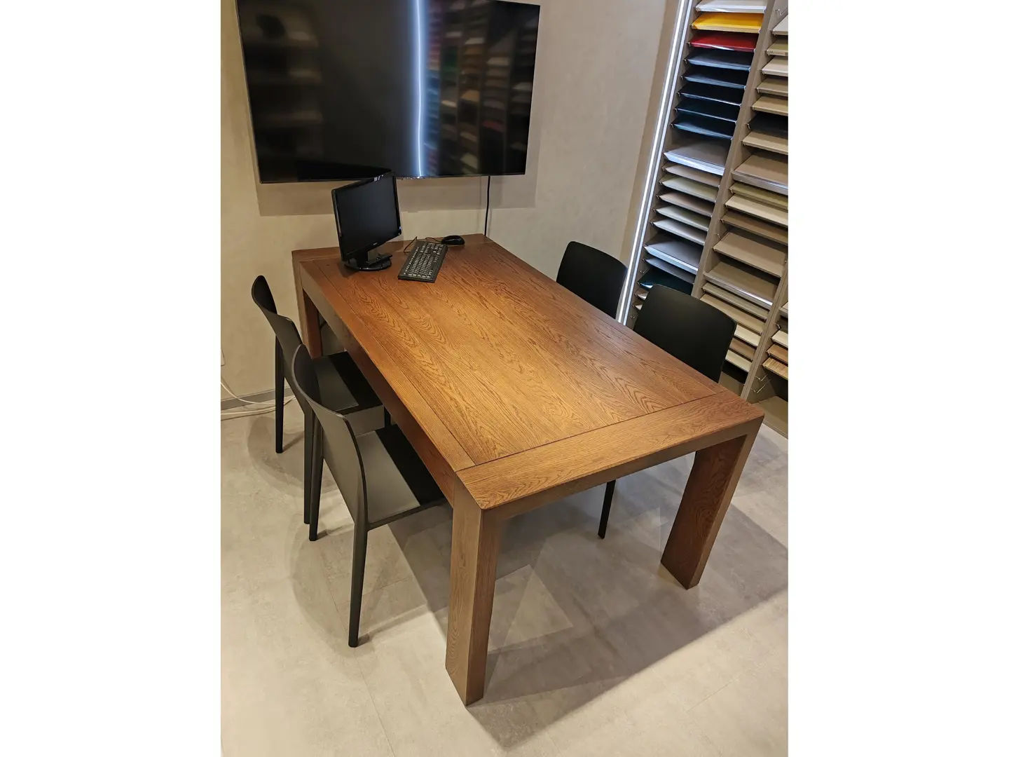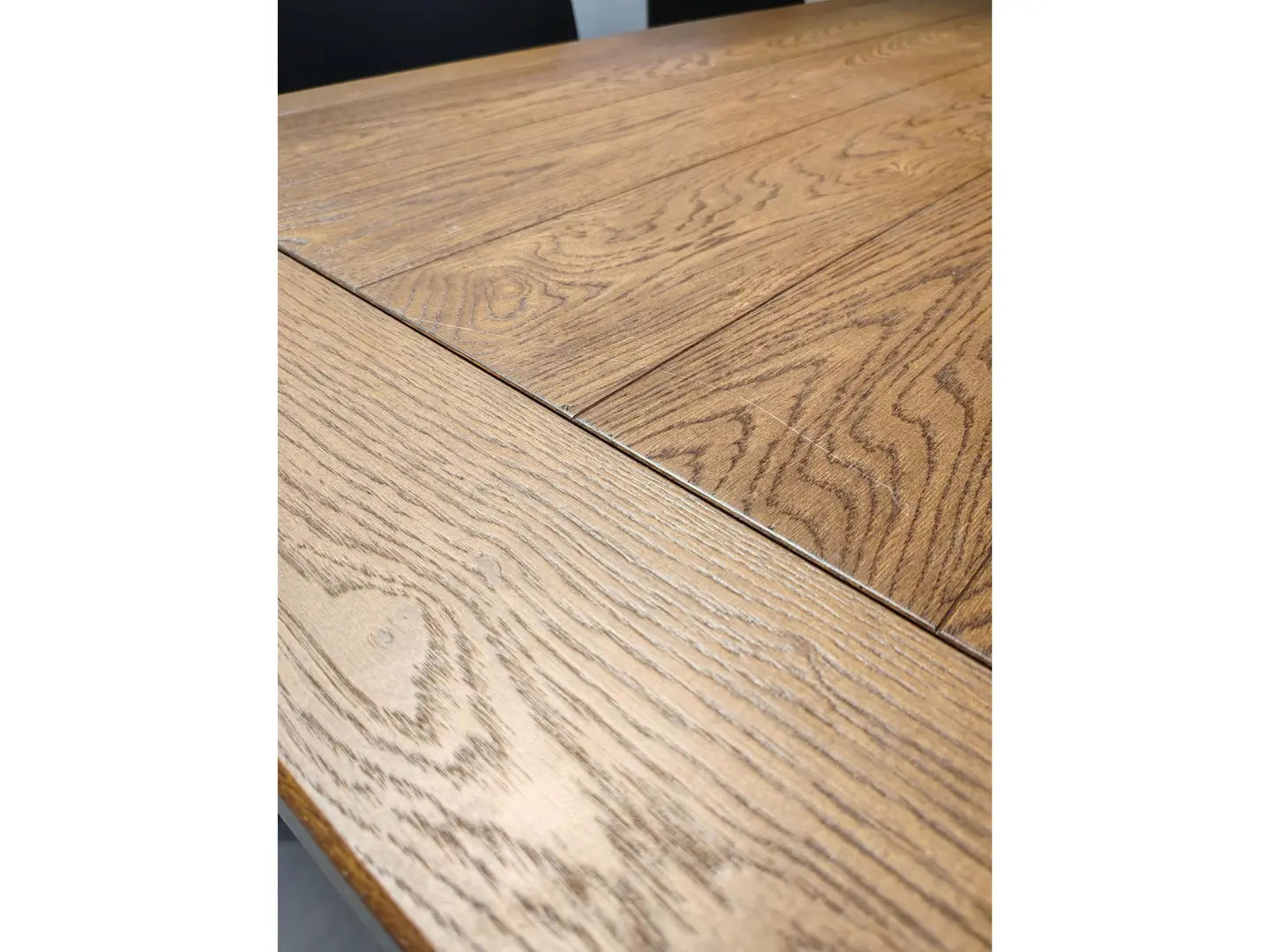Table estensibile con base in legno massello e superficie in multistrato rivestito in Rovere a poro aperto.